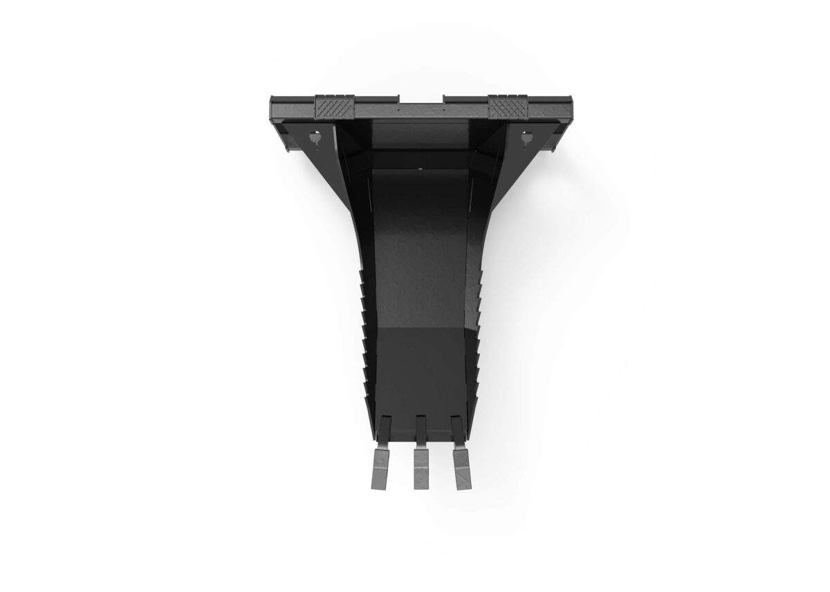 - 26 3/4“ wide bucket tapered down to a 13.5” cutting edge